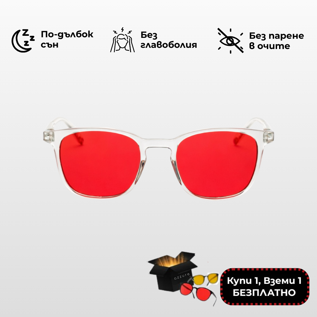 Нашите AZZURE Night Red лещи са създадени да блокират до 99% от изкуствената синя и зелена светлина, която влияе негативно върху производството на мелатонин – хормонът, отговорен за качествения сън и възстановяването.