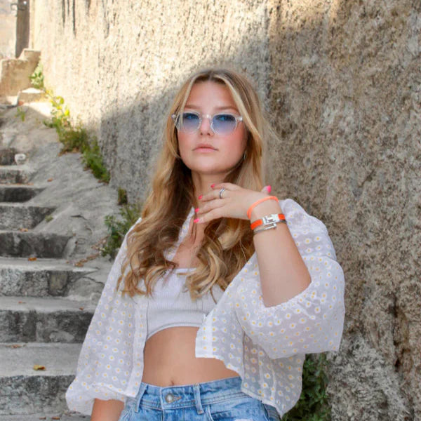 Слънчевите очила AZZURE осигуряват надеждна UV400 защита, като блокират вредните UVA и UVB лъчи, излъчвани от слънцето. Лещите са проектирани да намаляват отблясъците и да подобряват визуалния комфорт, като запазват естествените цветове и яснотата на зрението.